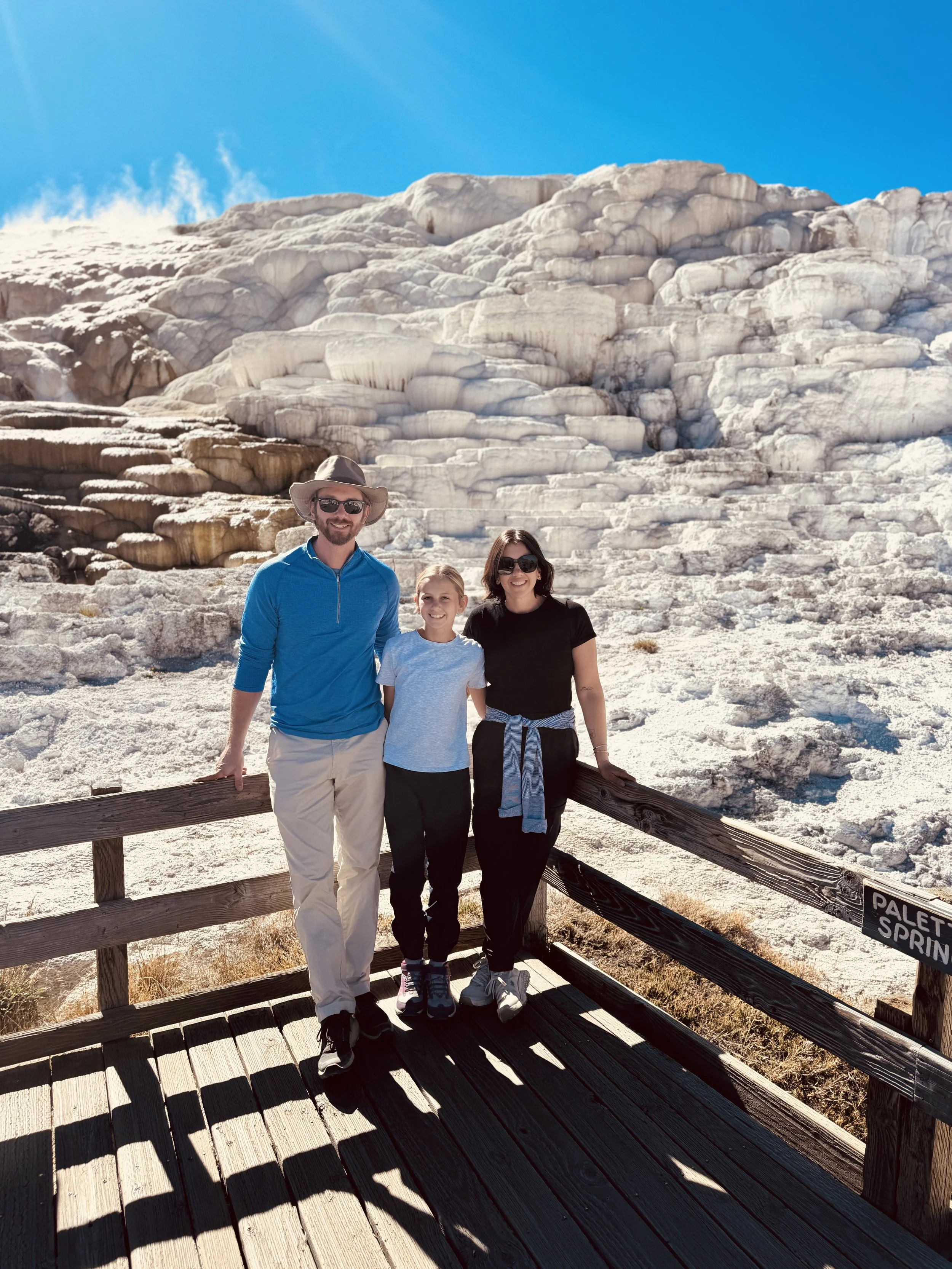Corey with his wife, Angela, and daughter, Everley in Yellowstone National Park.